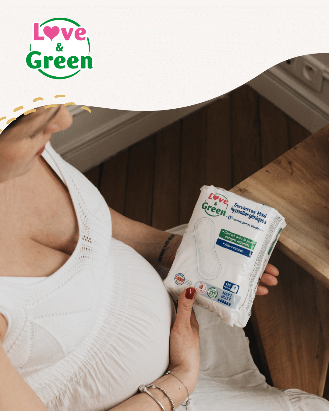 Parce que la santé et le confort des femmes comptent autant, Love & Green propose une gamme d’hygiène féminine et de soins :